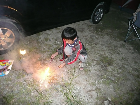 ここは各自テントサイトでの花火が可能です。