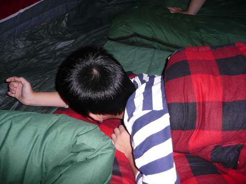 テントでの初めての就寝なのにグッスリ眠れた様子。